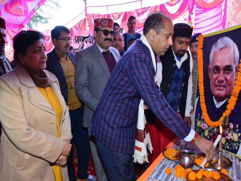 Chief Minister Shri Jai Ram Thakur paying floral tributes to former Prime Minister Bharat Ratan Atal Bihari Vajpayee ji on his 95th birth anniversary at Manali on 25 Dec 2019.