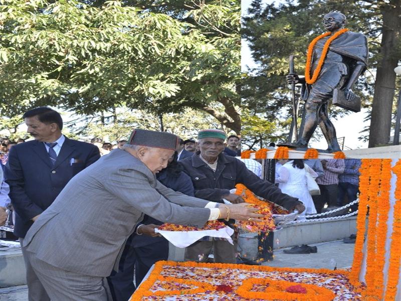 Sh. Virbhadra Singh, Chief Minister paid rich tributes to Father of the Nation, Mahatma Gandhi and former Prime Minister Shri Lal Bahadur Shastri on their birth anniversaries at historic Ridge Maidan and near Telegraph office here today.